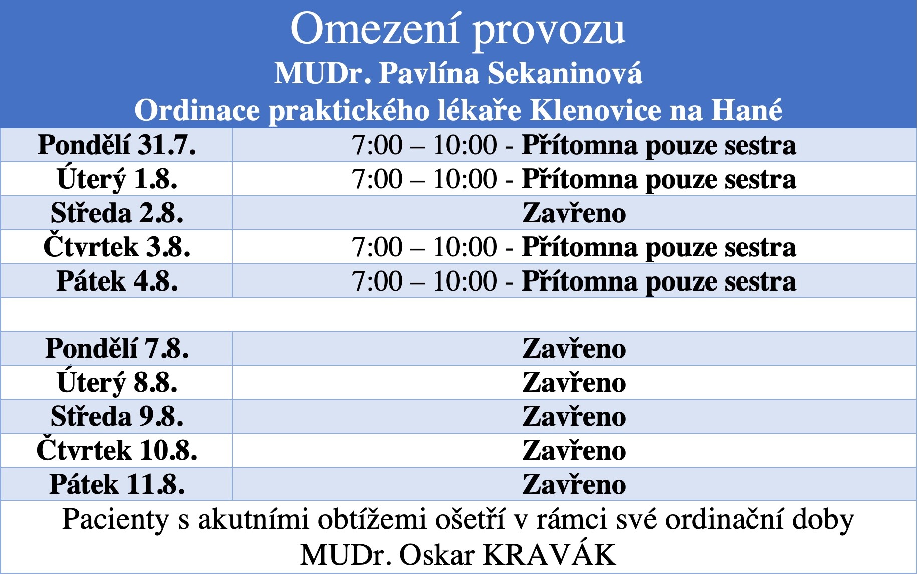 ordinace Klenovice na Hané