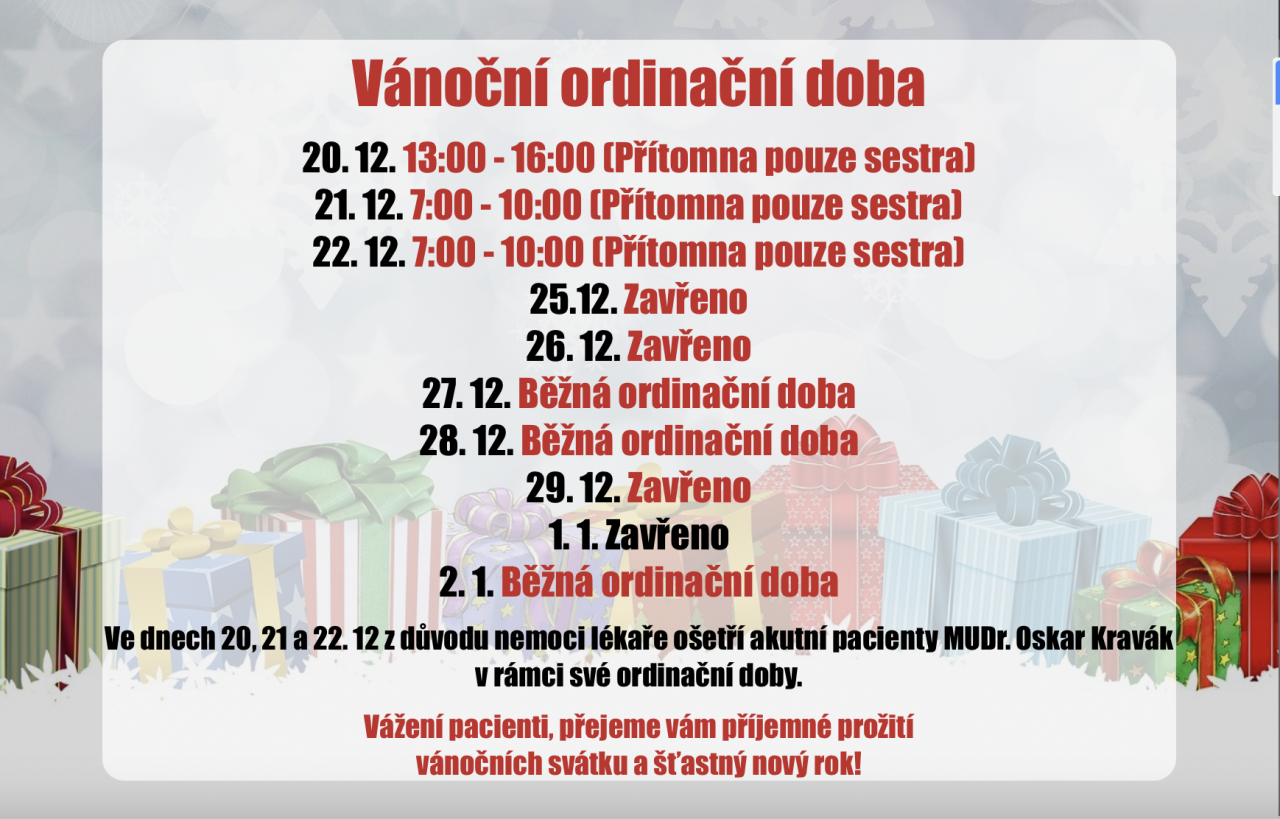 Ordinační doba ve vánoční svátky