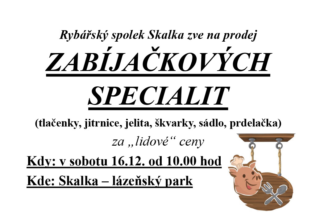 sobota 16. 12. 2023 pořádá Rybářský spolek Skalka