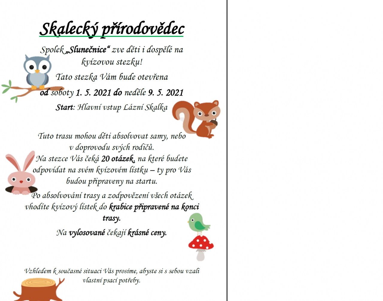 Kvízová stezka pro děti i dospělé.