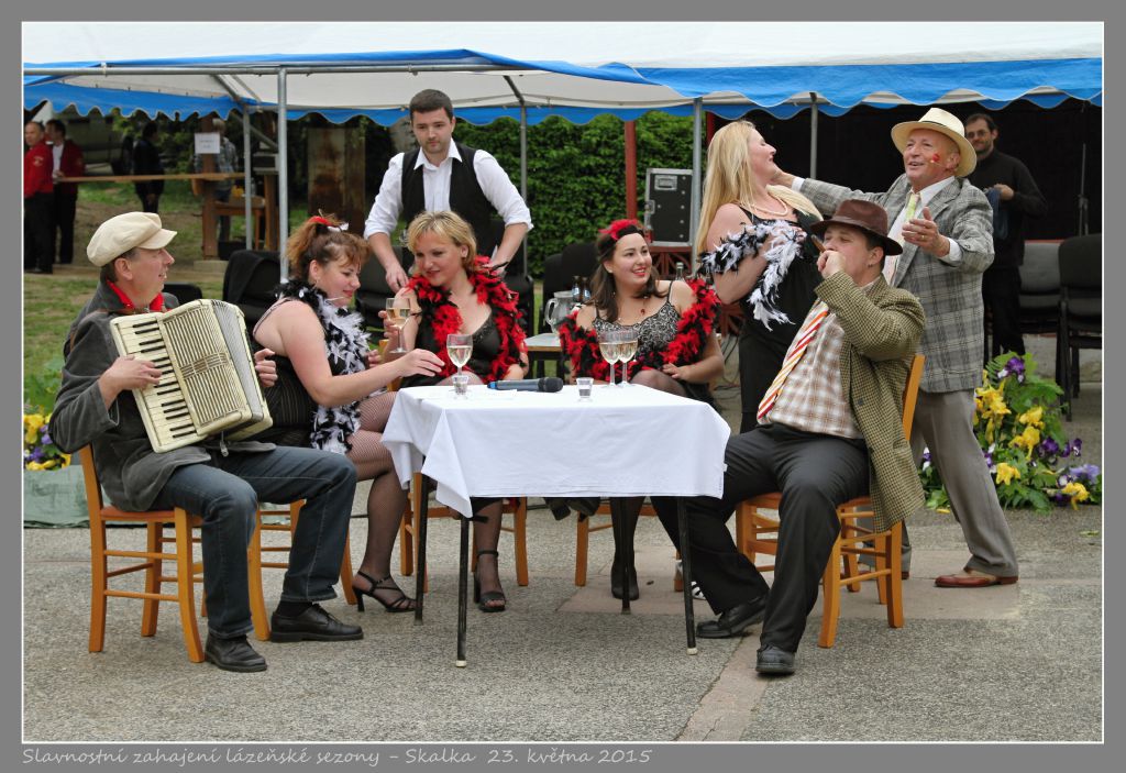 V letošním roce jsme opět pro návštěvníky připravili žehnání pramenů v ekumenickém pojetí, prameny požehnali duchovní z Katolické církve a Církve československé husitské. Po krásném duchovním prožitku jsme se za vedení mažoretek Miniorionek z Domu dětí a mládeže ORION Němčice nad Hanou průvodem přemístili k místním lázním, kde byl připraven doprovodný kulturní program. Nejprve zazněl již tradiční promenádní koncert v podání Dechového orchestru mladých při ZUŠ Němčice nad Hanou zpestřený vystoupením mažoretek. Další v programu vystoupili Divadelní společnost Větřák z Pivína, Druhý dech z Kralic na Hané a Sestry v akci - Takurčitěband. Závěr kulturního odpoledne patřil hudební skupině TAKURČITĚBAND. Děti jsme obdarovali modrými nafukovacími balonky s logem OLOMOUCKÉHO KRAJE a Lázní Skalka.